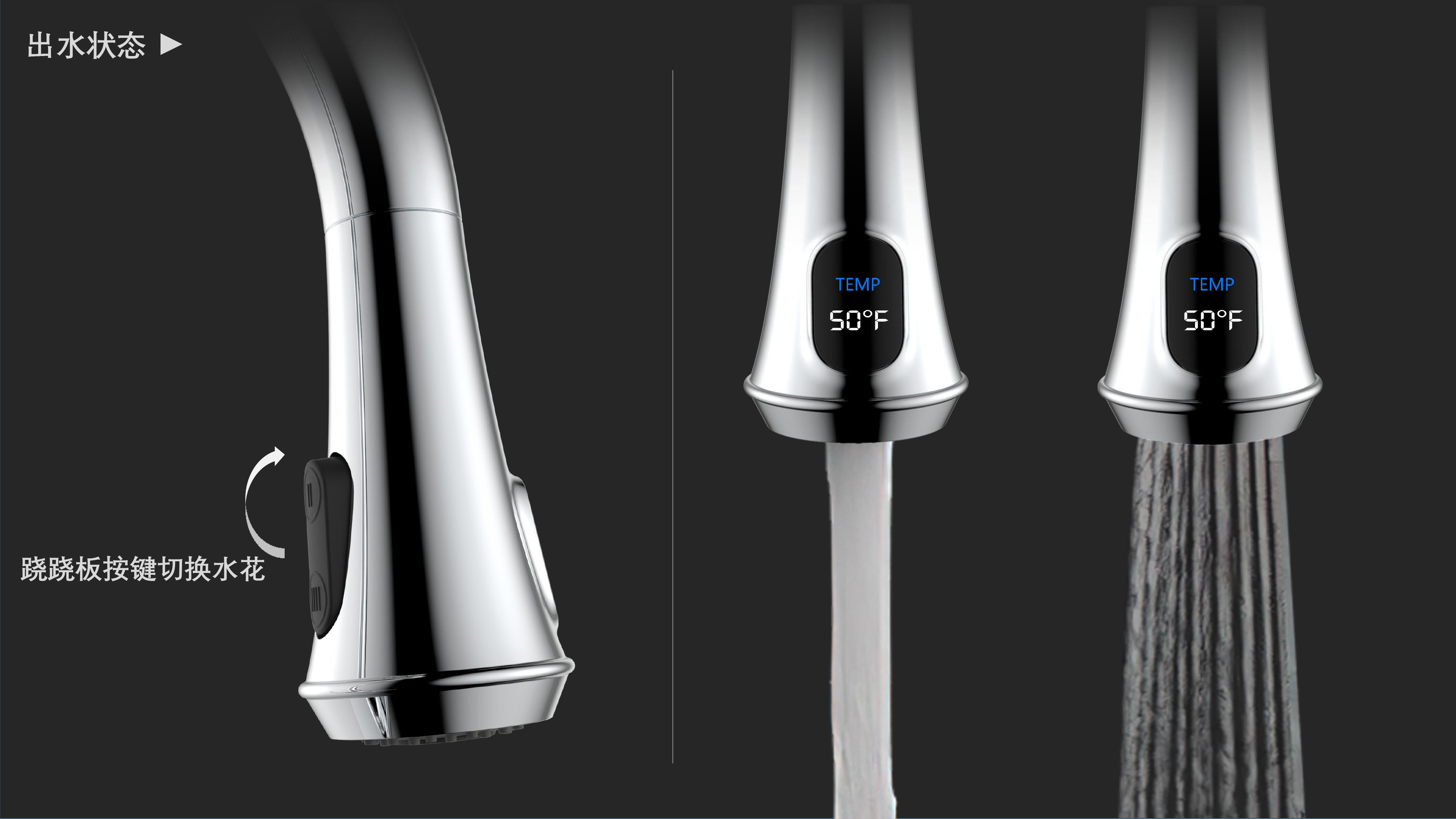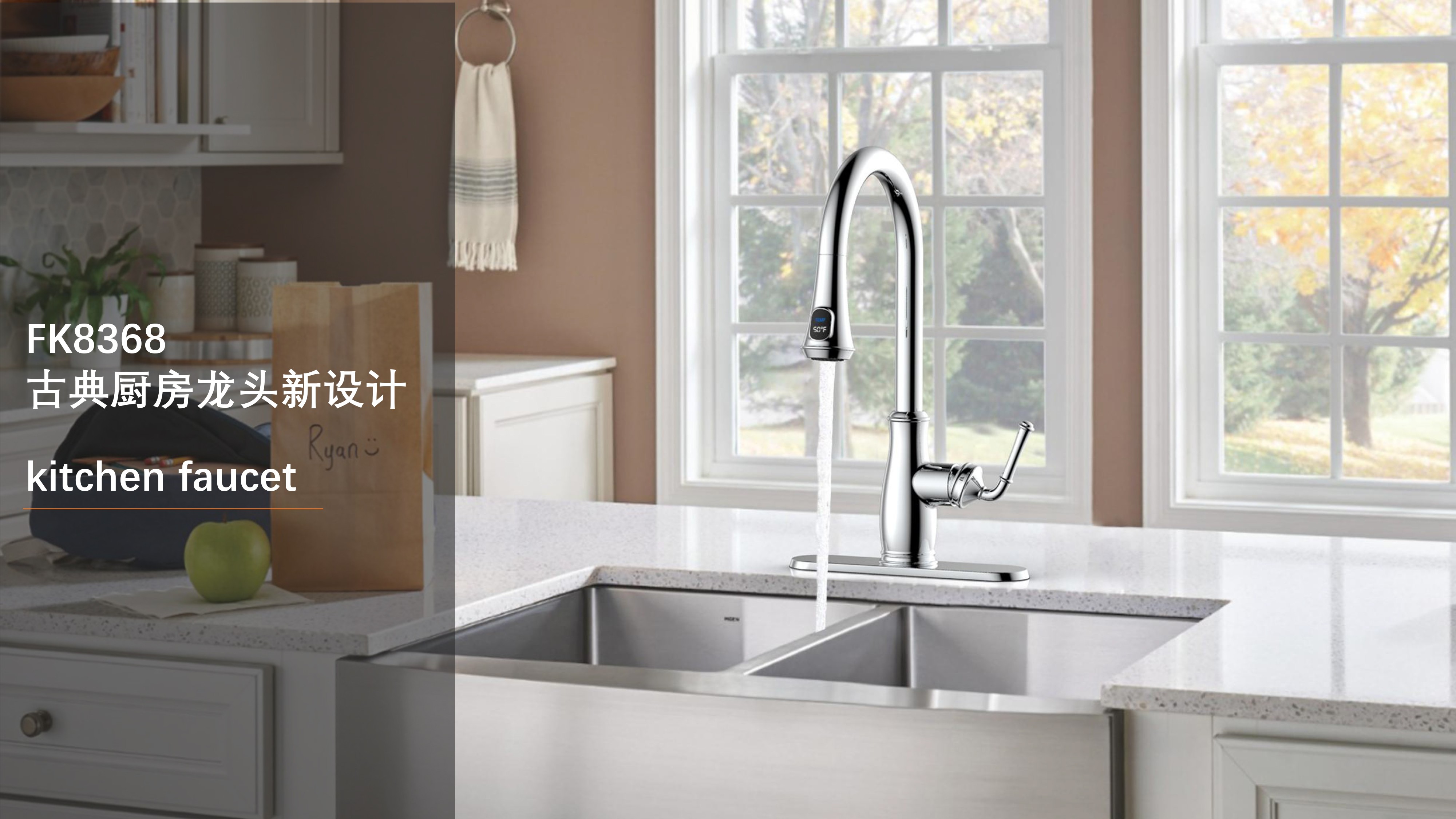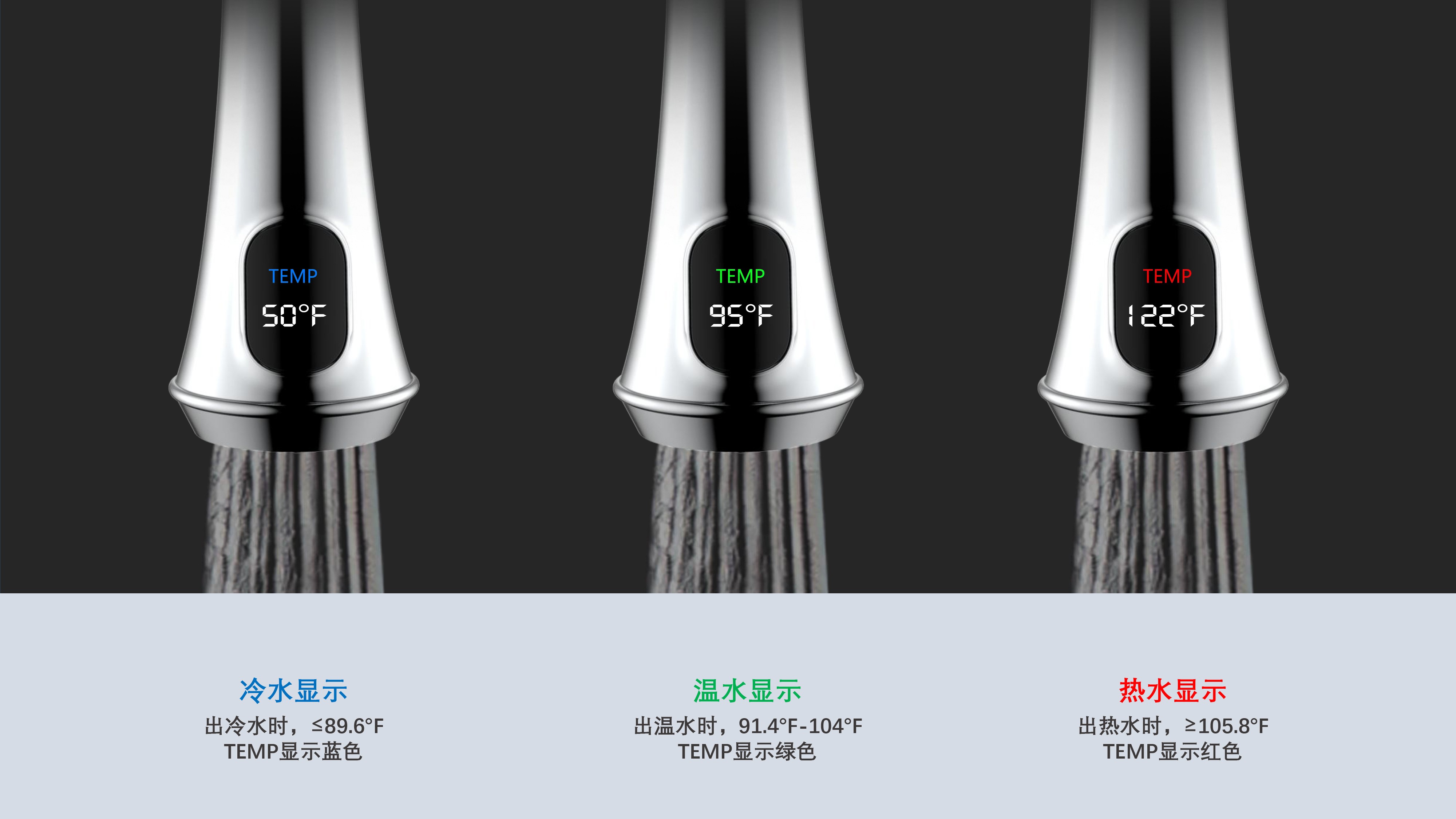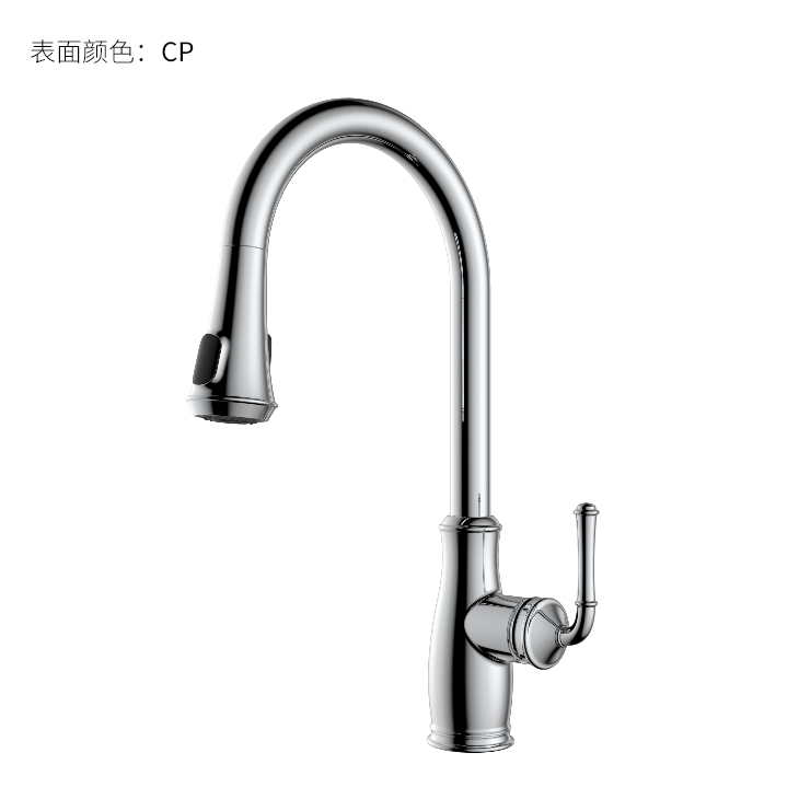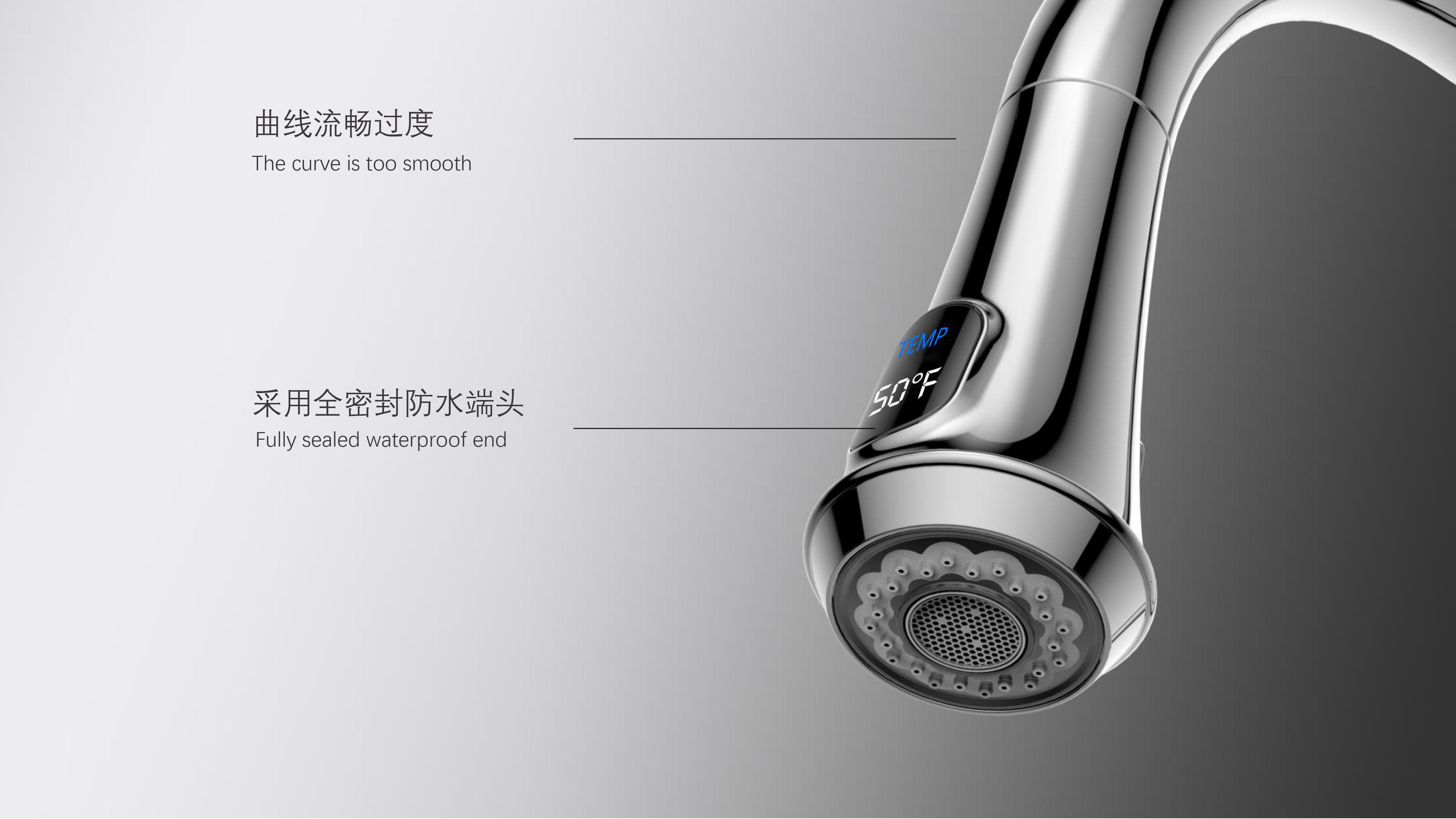 古典廚房龍頭;抽拉頭隨意抽拉多角度使用;采用全密封防水端頭;水力發(fā)電技術(shù),智能芯片溫度數(shù)顯-冷水TEMP顯示藍色、溫水TEMP顯示綠色、熱水TEMP顯示紅色