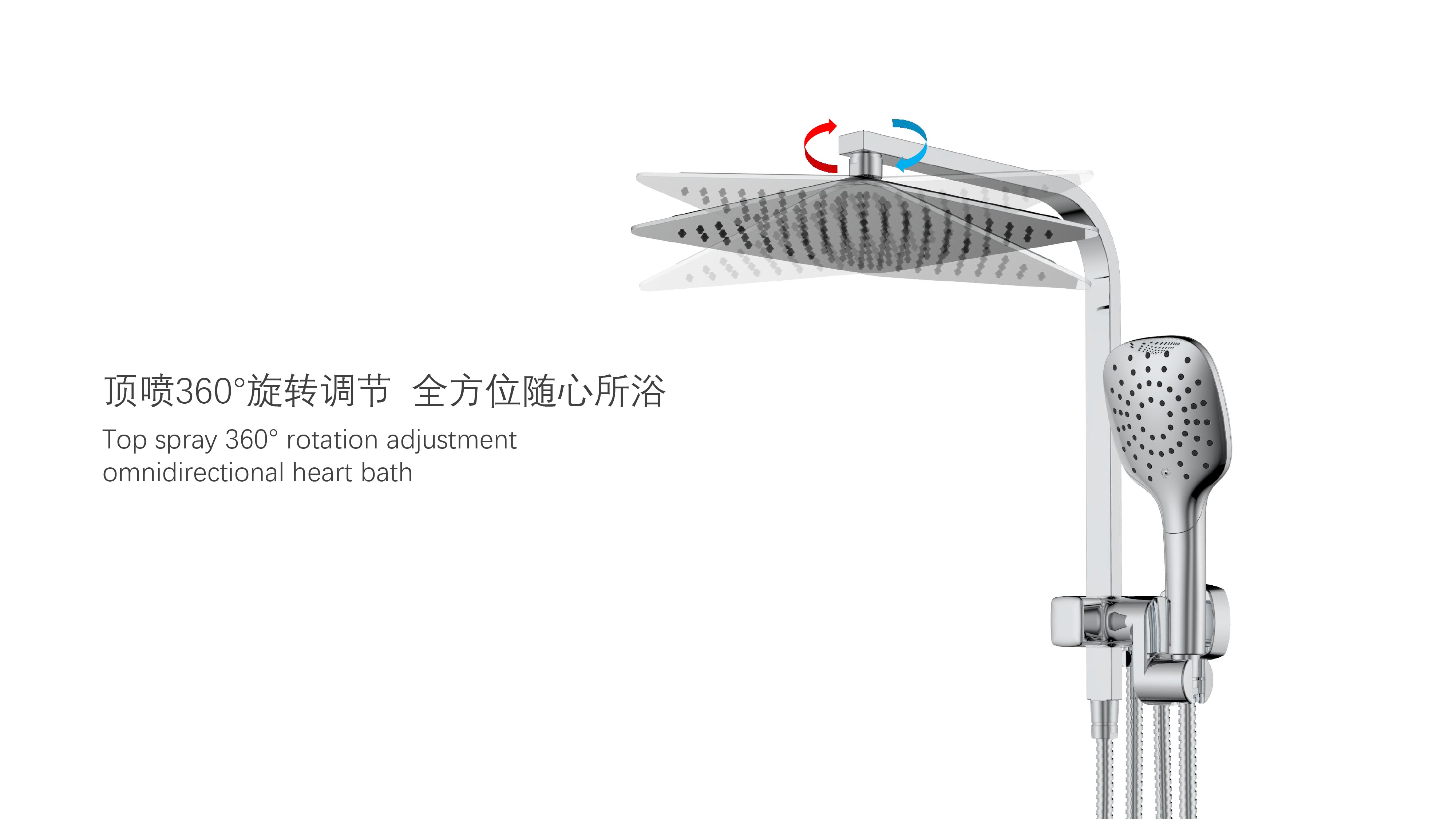 方形寬大頂噴;Z字形三通;按壓切換頂噴/花灑出水